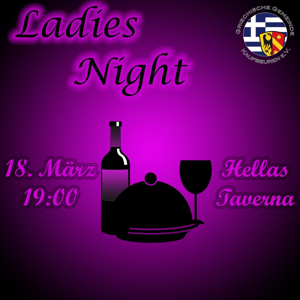 Το Σάββατο 18 Μαρτίου και ώρα 7 μ.μ. στο εστιατόριο Hellas Taverna (Kemptener Tor 10, Kaufbeuren), προσκεκλημένες είναι όλες οι γυναίκες της κοινότητάς μας και μη.