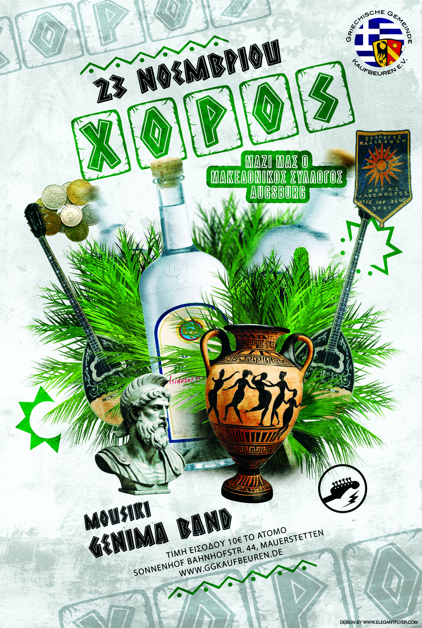 Σας προσκαλούμε όλους στον ετήσιο χορό της Ελληνικής Κοινότητας Kaufbeuren, που θα πραγματοποιηθεί το Σάββατο 23 Νοεμβρίου στο γνώριμο σε όλους μας Sonnenhof στο Mauerstetten! Ελάτε να ζήσουμε μαζί ένα αυθεντικό ελληνικό γλέντι γεμάτο μουσική, χορό και κέφι, όπως μόνο εμείς ξέρουμε να δημιουργούμε.